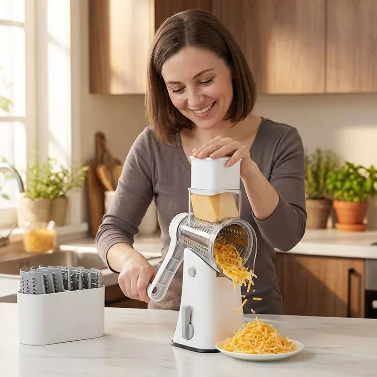 Der Nygex-Reibeaufsatz verwandelt Käse, Karotten, Gurken und Schokolade in Magie. Ein stabiler Sockel ersetzt vollgestopfte Schubladen mit stumpfen, unsicheren Werkzeugen. Das Handkurbel-Design hält die Finger geschützt, während Mahlzeiten schneller, frischer und einfacher werden.