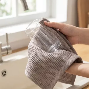 Genießen Sie sanfte Reinigung mit dem Nygex-Handtuch, das empfindliches Geschirr verwöhnt. Die Wabenstruktur saugt verschüttete Flüssigkeiten schnell auf und hinterlässt Arbeitsflächen nach dem Essen makellos. Das weiche Baumwollgewebe fühlt sich bei den täglichen Aufgaben gemütlich an den Händen an. Robuste Fasern bewältigen Schrubbarbeiten mühelos und bleiben danach dennoch glatt.