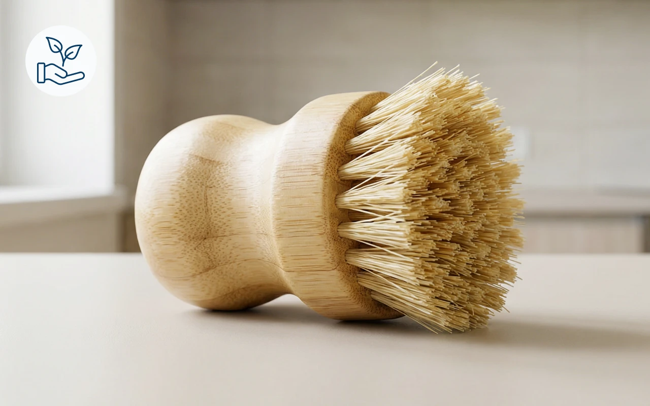 Nachhaltiger Bambusgriff und natürliche Borsten ersetzen Plastikschwämme. Robuste Verarbeitung reduziert Abfall und sorgt gleichzeitig für eine dauerhaft ordentlich aussehende Küche.