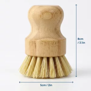 Ich habe diese Bambusbürste für unsere winzige Küche gekauft. Sie steht neben der Spüle, braucht kaum Platz und macht das Reinigen von Töpfen und Tellern schnell und unkompliziert.