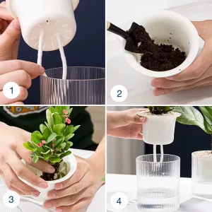 Kleiner selbstbewässernder Blumentopf mit Reservoir (unterer Wasserzulauf)