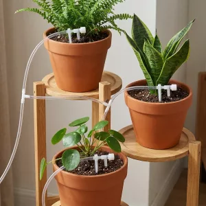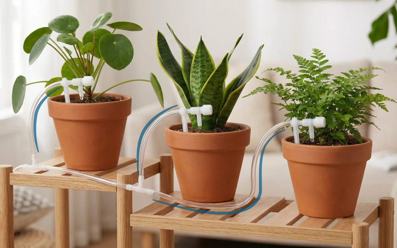 Ich bin fast jedes Wochenende unterwegs und kam immer zu traurigen Pflanzen zurück. Seit ich diese Tropfleitung installiert habe, bleibt jeder Topf grün, mit gleichmäßiger Feuchtigkeit und ohne Wasserflecken auf dem Boden.