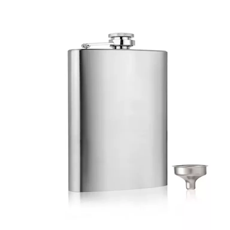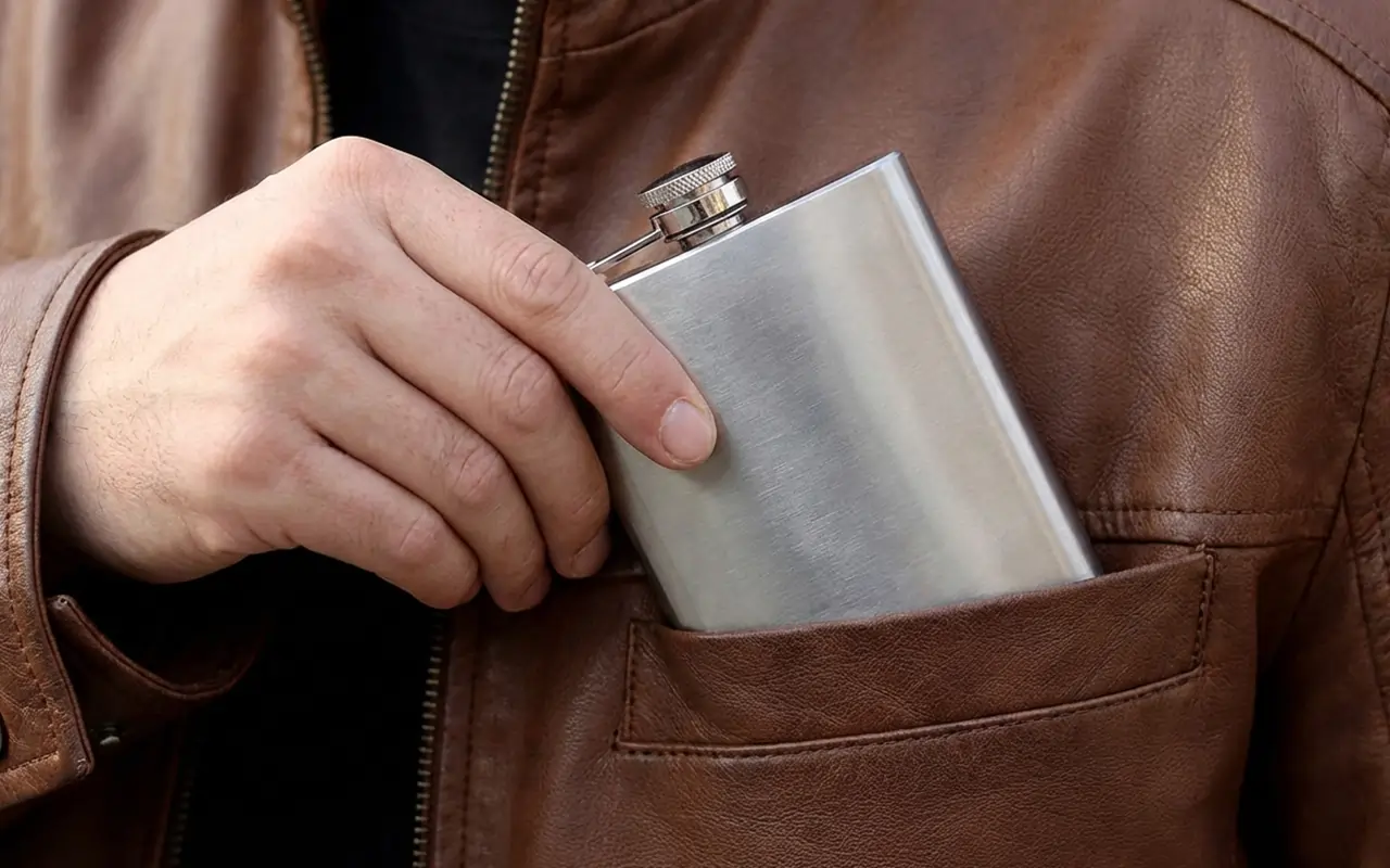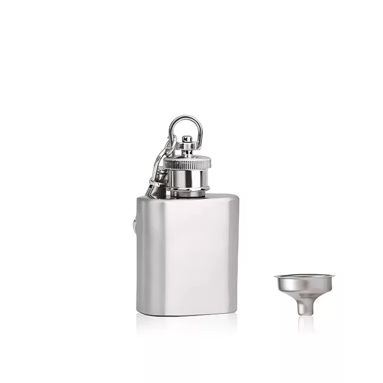 Der kompakte Sieben-Unzen-Körper passt leicht in Jacken oder Taschen. Die gebogene Form liegt angenehm am Körper an und bleibt beim Gehen, auf Partys und Reisen dezent.
