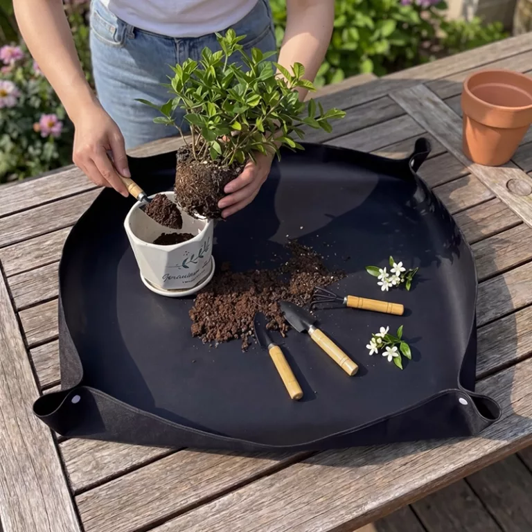 Ich benutze diese Matte auf meinem Schreibtisch im Büro, um mich um Bonsai zu kümmern. Kein Kies gelangt in meine Tastatur, und ich kann die Reste danach einfach in den Mülleimer kippen.