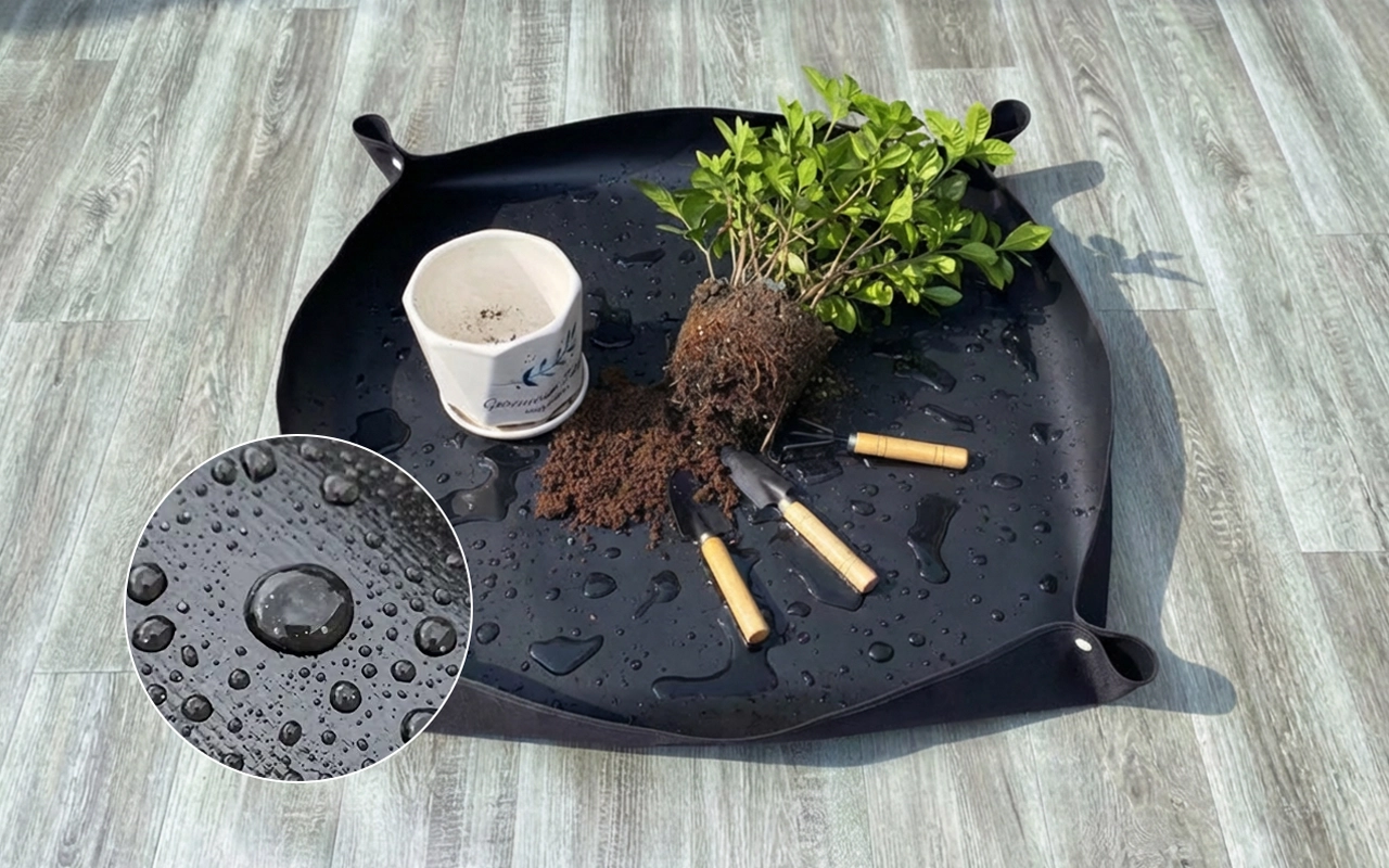 Ich topfe jetzt alle meine Zimmerpflanzen auf dieser Matte um. Die erhöhten Ränder halten Erde und Wasser zurück, und die Reinigung ist nur ein schnelles Abspülen im Waschbecken.